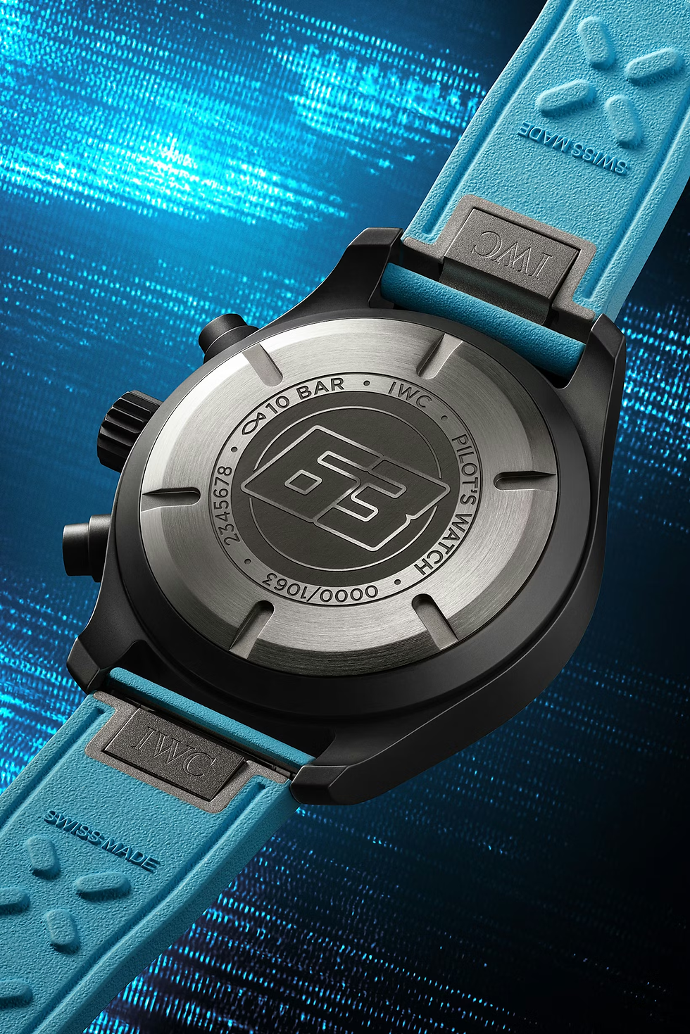 Al girarlos, el guiño personal aparece grabado en el fondo de titanio: el 63, número que Russell arrastra desde sus días en el karting. En el interior, el cronógrafo monta el calibre 69380 de manufactura IWC (46 horas de reserva), mientras que el Automatic 41 equipa el calibre 32112 con sistema de doble trinquete y una notable reserva de marcha de 120 horas. Ambos llegan con correa de caucho azul y el sistema EasX-CHANGE®, que permite cambiarla sin herramientas.