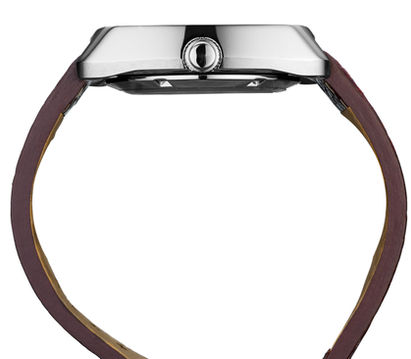 Seiko Recraft Series Automático. Este sofisticado reloj para hombre está diseñado con una caja rectangular de acero inoxidable y una correa de cuero marrón, con carátula verde azulado y calendario de día/fecha con fondo de caja transparente. El movimiento automático de 21 joyas permite capacidades de carga manual y automática, y late a una frecuencia de 21,600 vibraciones por hora, con una reserva de marcha de aproximadamente 41 horas. Resistente al agua hasta 50 metros.